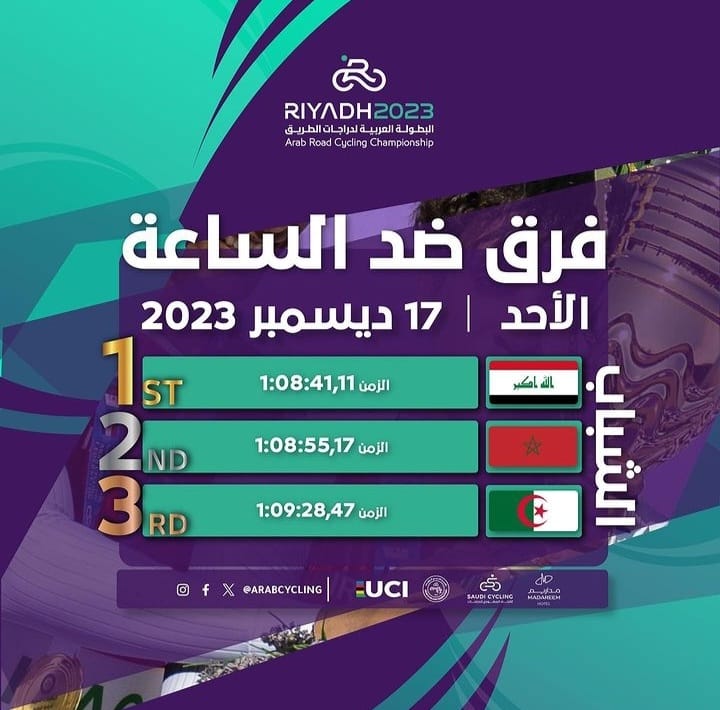 وكانت الدراجة المغربية كانت قد تألقت في دورة الألعاب العربية بالجزائر (05-15 يوليوز 2023) بحصدها ذهبيتين في سباق ضد الساعة فردي بواسطة محسن الكورجي وحسب الفرق بواسطة الرباعي أشرف الدغمي، محسن الكورجي، عادل العرباوي وأسامة خافي، كما أحرزت فضية السباق على الطريق حسب الفرق