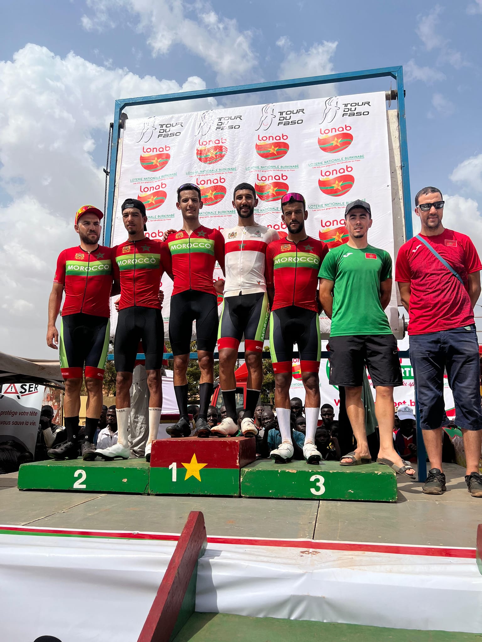 ومن جهته، توج المنتخب المغربي بطلا للدورة 34 من طواف بوركينافاسو بمجموع 82 س و09 د و 58 ث، متقدما على المنتخب البوركينابي بفارق دقيقتين و26 ث وبفارق 6د و42 ث على فريق فلاندرز المحترف البلجيكي.