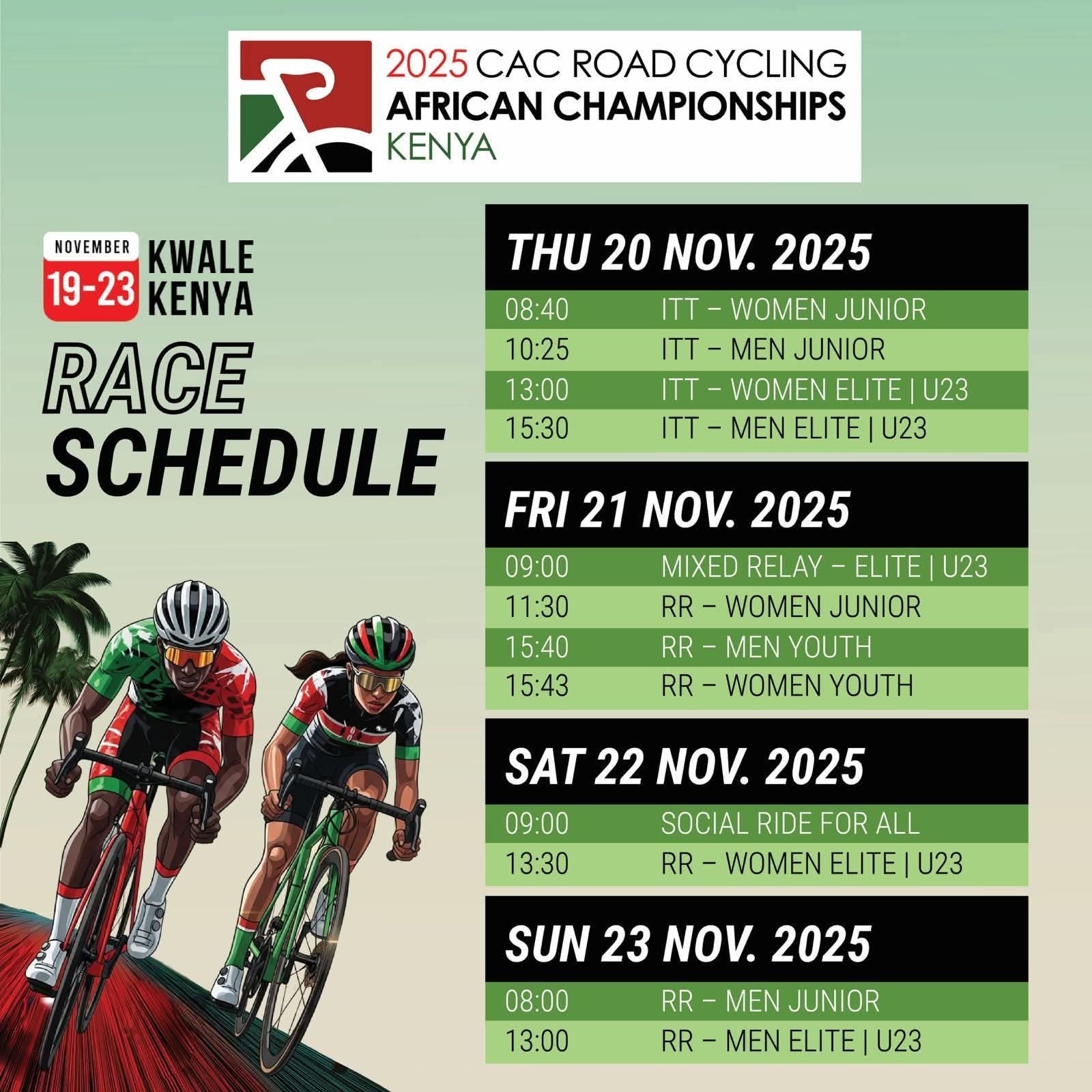 يشارك فريقنا الوطني المغربي للدراجات خلال الفترة ما بين 19 و23 نونبر الجاري في منافسات بطولة أفريقيا للدراجات على الطريق التي تقام للمرة الثانية على التوالي بجمهورية كينيا وتحديدا بمدينة كوالي الساحلية المطلة على المحيط الهندي.
