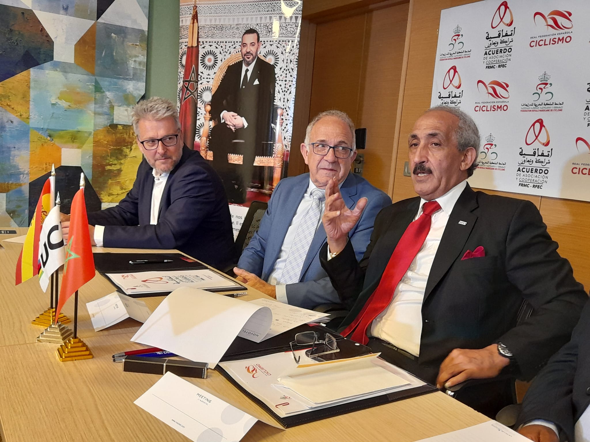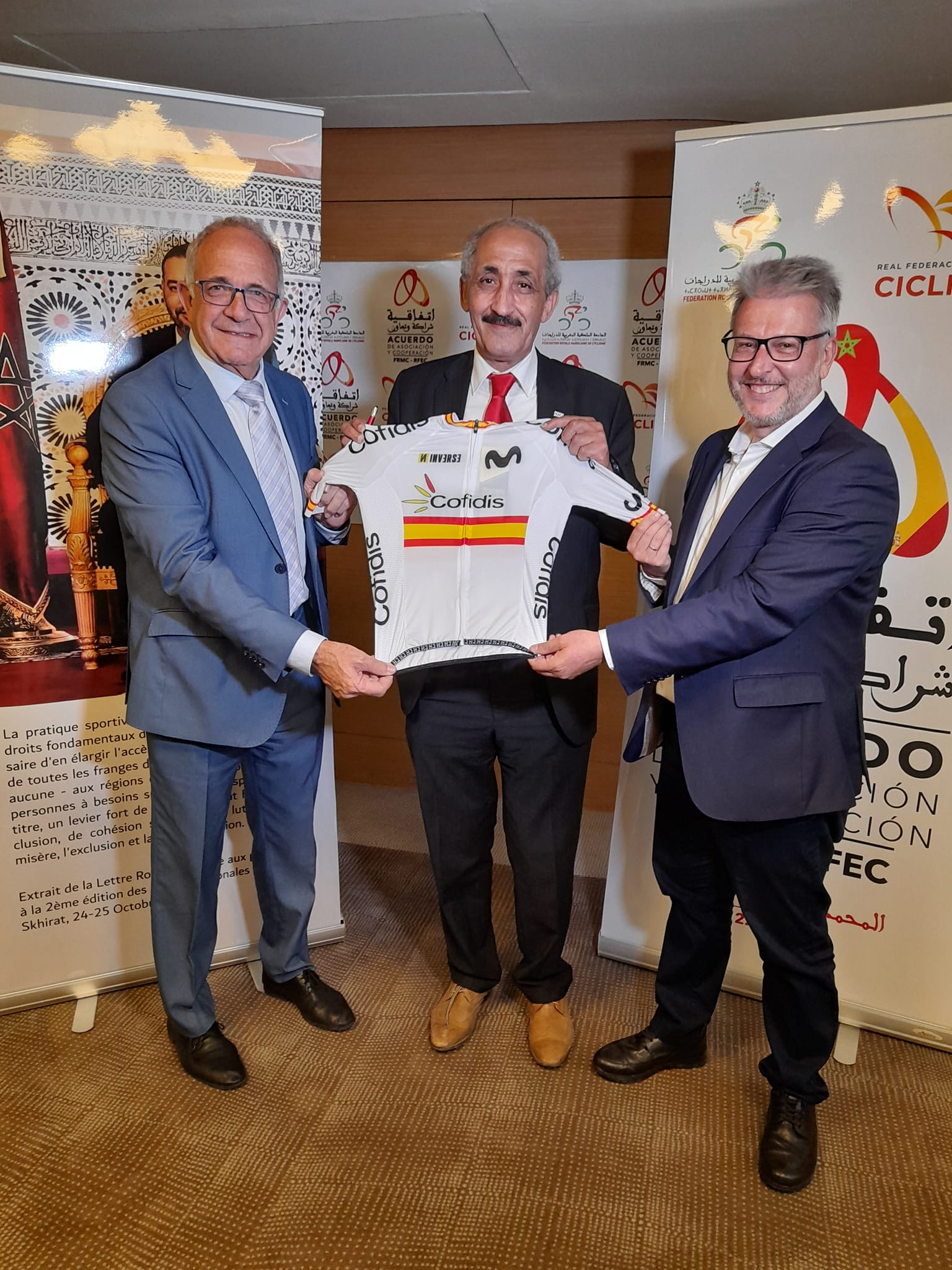 تبعا لسلسلة من الترتيبات، حل ببلادنا، كل من السيد "خوسيه لويس لوبيز كيرون"، رئيس الجامعة الملكية الإسبانية للدراجات وعضو اللجنة الأولمبية الإسبانية والسيد "أليخاندرو مارتان غارسيا"، الكاتب العام للجامعة الملكية الإسبانية للدراجات.