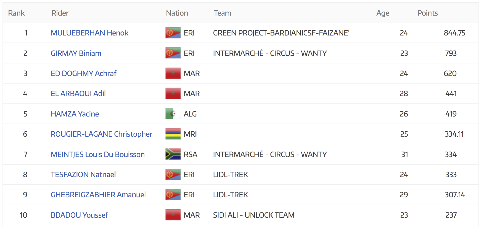 وحافظ الفريق الوطني على ريادته للترتيب العام منذ المرحلة الأولى، التي جرت في مدار مغلق بمدينة كيبي، وفاز بها الدراج المغربي أشرف الدغمي.