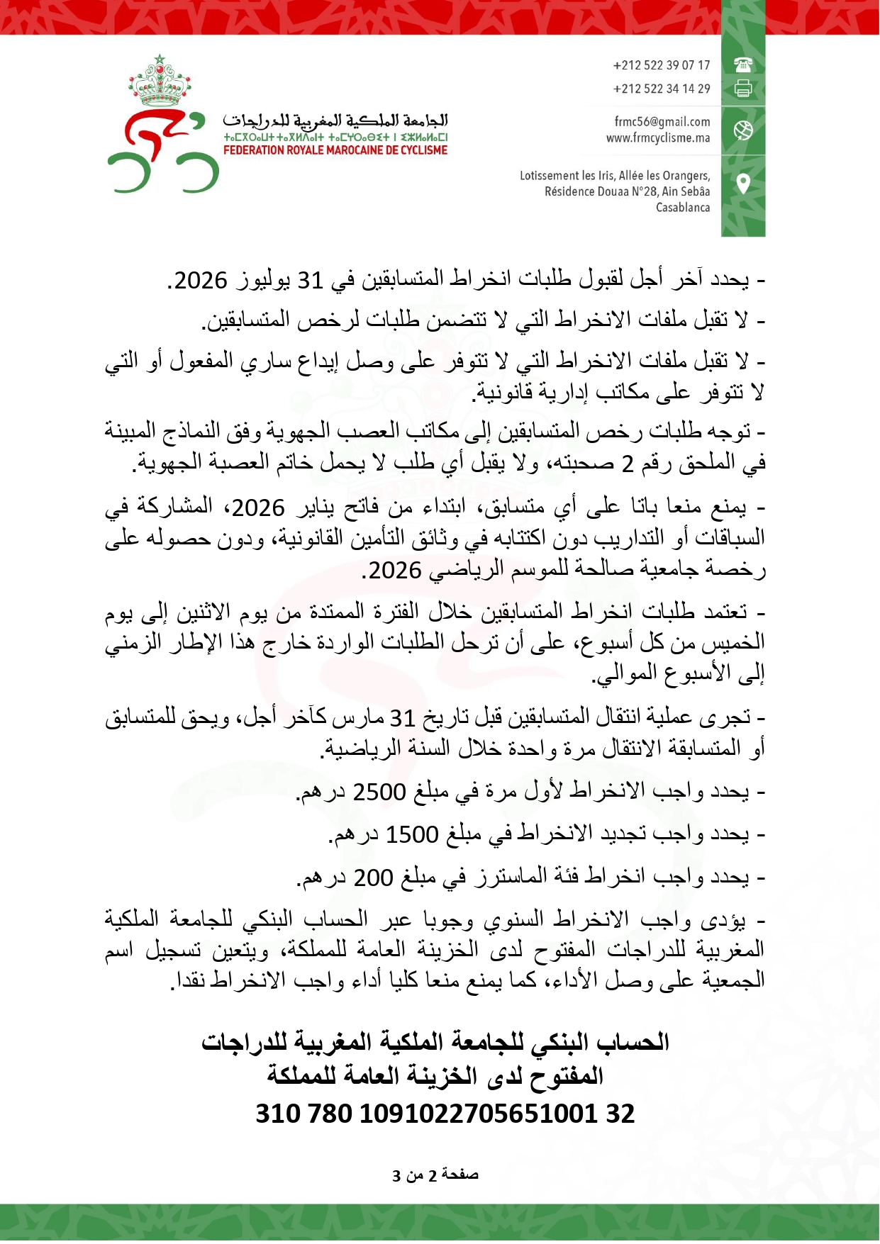 دورية في شأن افتتاح الموسم الرياضي 2026